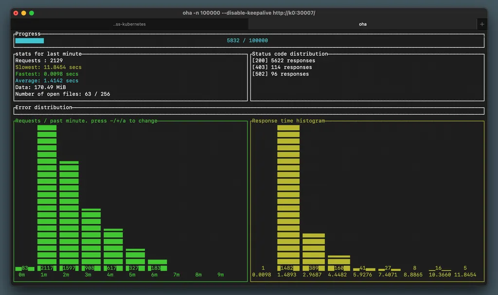 $ oha -n 100000 --disable-keepalive http://k0:30007/